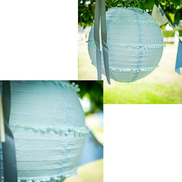 Description de Lanterne Japonaise Bleu ciel à Pompons, Lampion boule Papier, 35 cm, à suspendre