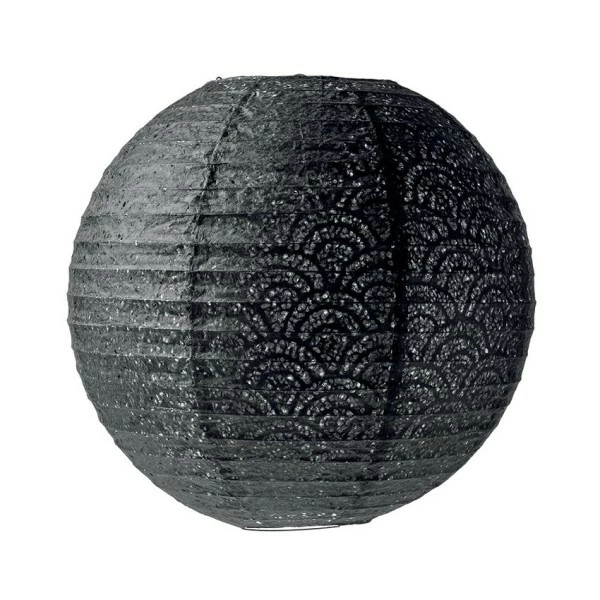 Description de Lanterne Japonaise noir effet dentelle, diam. 35 cm, Lampion boule Papier, à suspendre