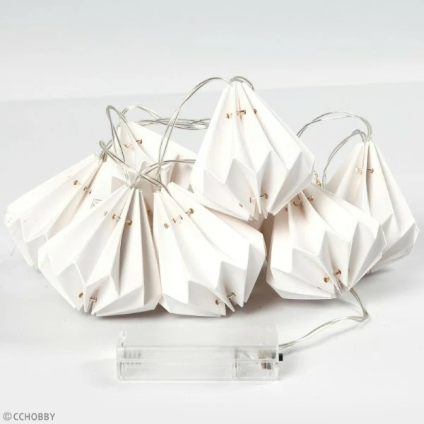 Mettez un peu de magie chez vous à l’aide de cette guirlande lumineuse Lampions origami coniques qui trouvera facilement sa place grâce à sa couleur blanche. Vous pouvez aussi la personnaliser avec de la peinture ou des paillettes par exemple. Laissez exprimer votre imagination pour créer une déco unique !