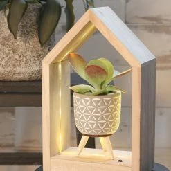 Cloche en verre lumineuse avec socle en bois pour la déco