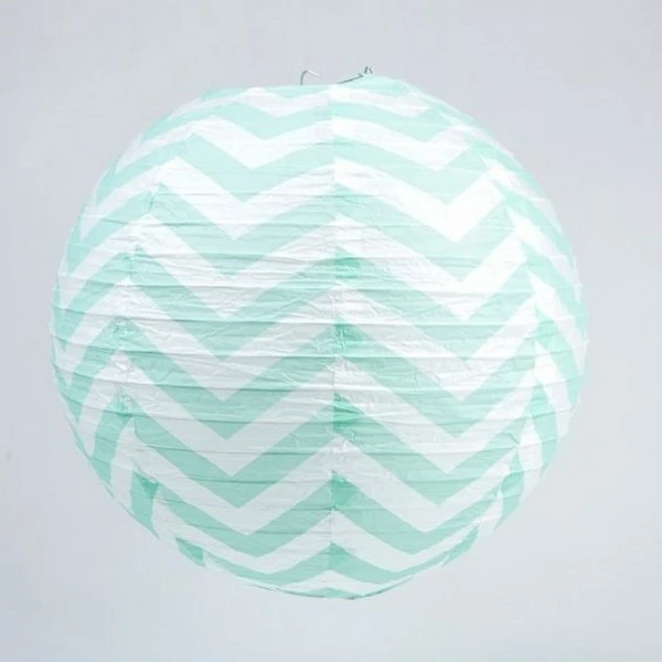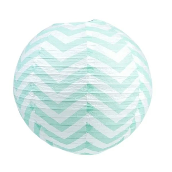 Description de Lanterne japonaise Zigzag Bleu Menthe et Blanc de 35 cm, Boule chinoise Chevron en papier Ă suspendr