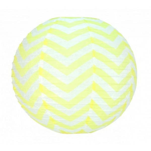 Description de Lanterne japonaise Zigzag Jaune pastel et Blanc de 35 cm, Boule chinoise Chevron en papier à suspend