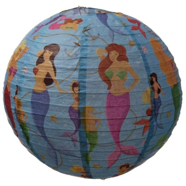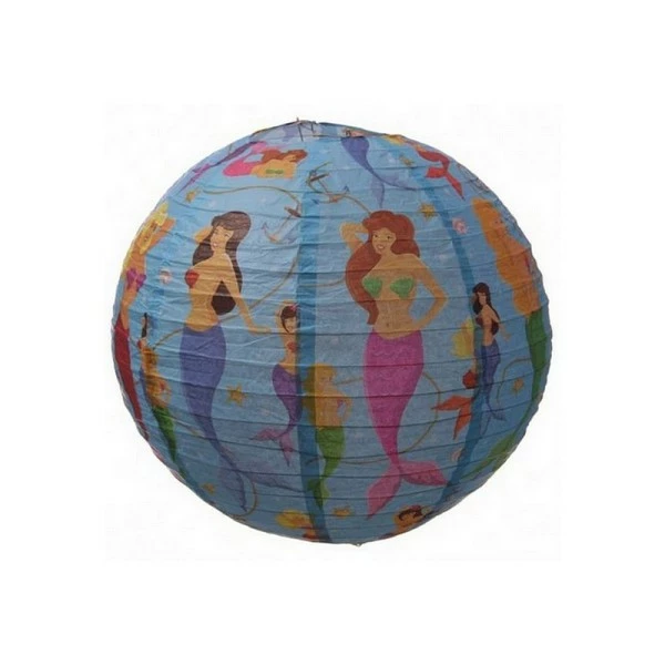 Description de Lanterne Japonaise Bleu Sirène, diam. 39 cm, Lampion boule Papier, à suspendre